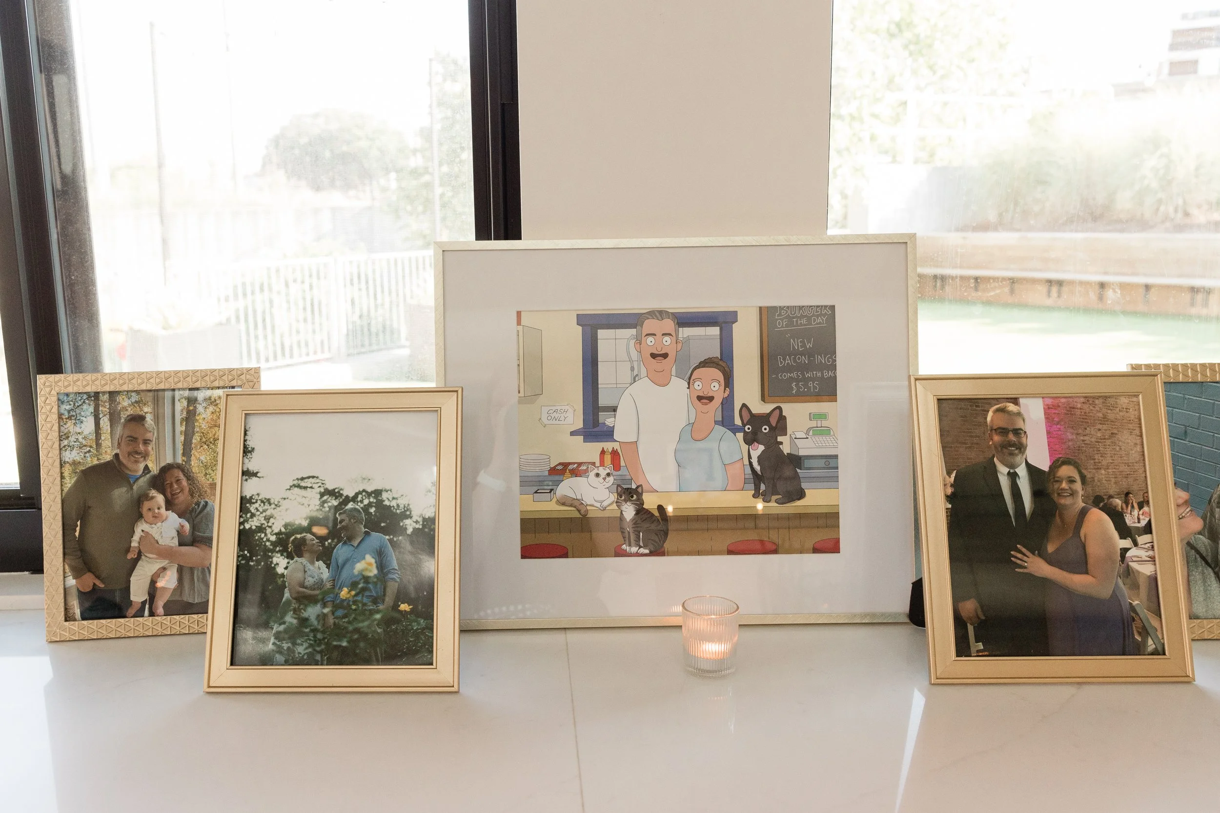 Why it’s special: Not only do these work as standalone decor, but they also serve double duty as lighting for your venue. The soft glow from the candles will highlight the images beautifully, creating a cozy ambiance.